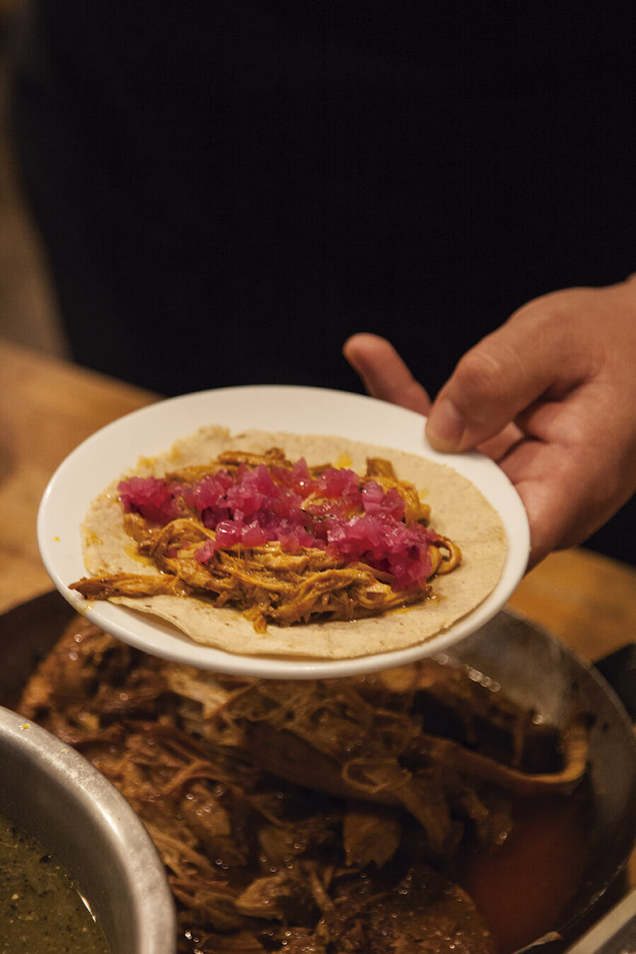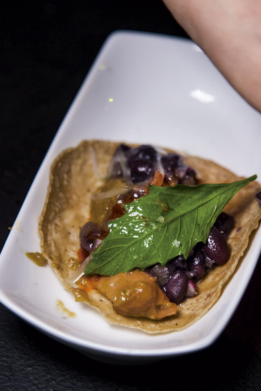 Taco chicharrón de coco en salsa verde de Gabriela Ruiz, de Carmela y Sal